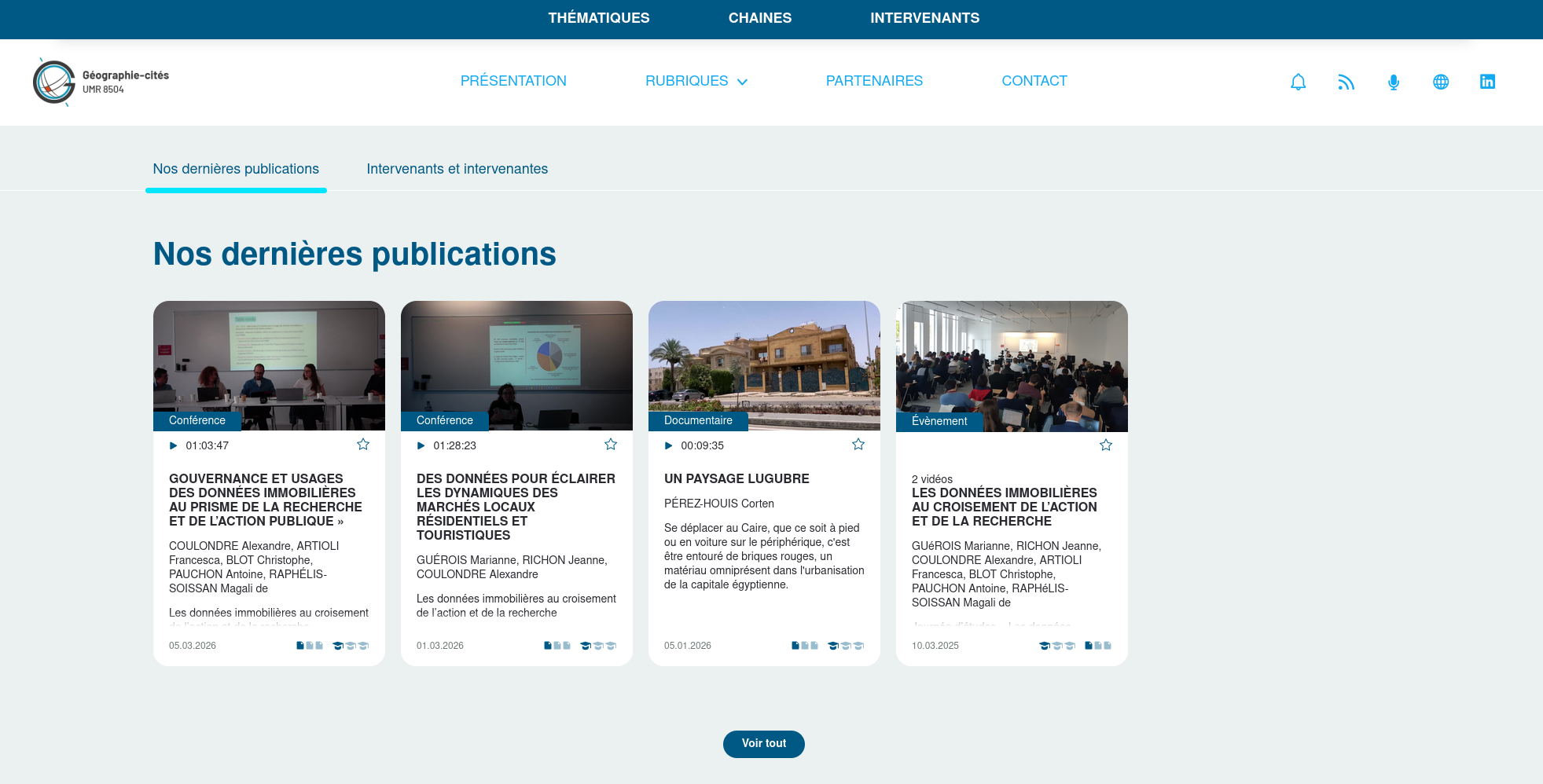 Retrouvez les films de recherche et les captations vidéos réalisés dans le cadre des activités de Géographie-cités sur CanalU.
